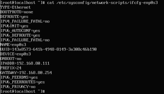 # cat /etc/sysconfig/network-scripts/ifcfg-enp0s3 으로 ifcfg-enp0s3(뒷부분은 시스템 마다 다름) 파일을 확인한다.