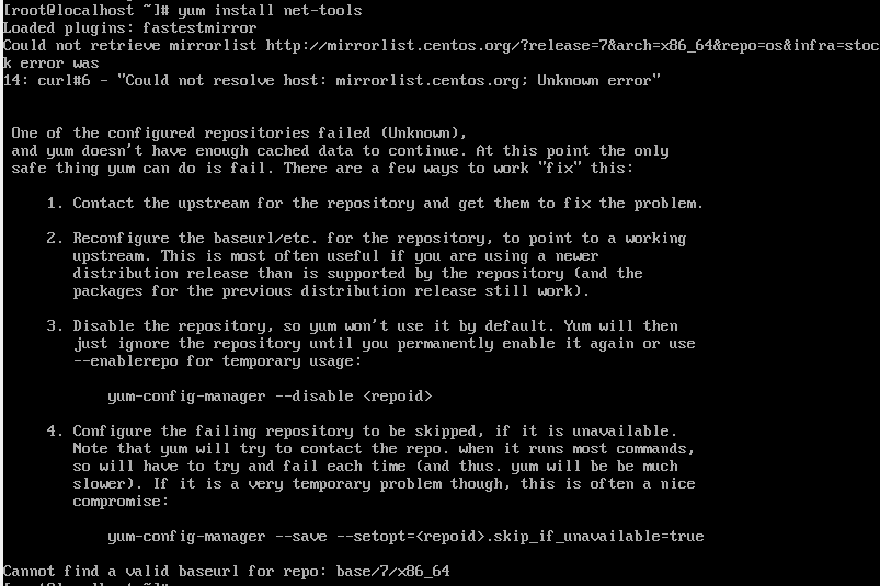네트워크가 제대로 연결되어 있지 않다면 yum install에 문제가 발생한다고 한다.