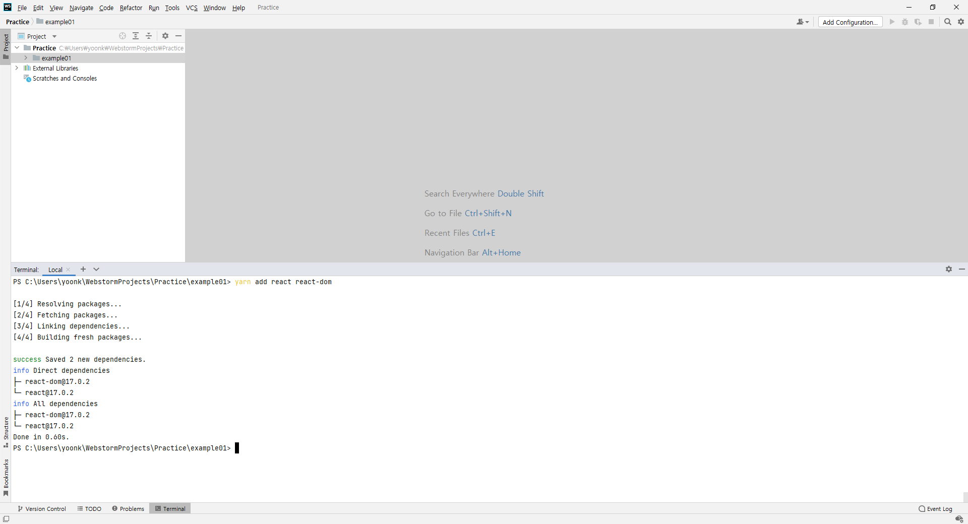WebStorm에 가서 다시 yarn을 실행해보면 실행이 되는 것을 확인 할 수 있다.